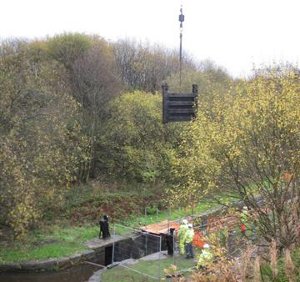 There will be work on many locks, with gates being replaced, the one in the picture being at Hopper Lock (40E) that needed a very high jib crane to negotiate all the trees surrounding the lock.