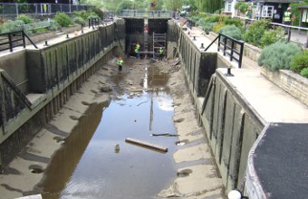 One of the Environment Agency staff told us that the bottom of the gate was cracked right through and in danger of collapse. If it had broken the contents of the lock, including boats and boaters, could have been sucked through the hole below the waterline.