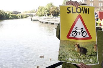 The towpath of the waterway is particularly dangerous, with many campaigns being mounted, particularly by mothers fearful of their children being hurt or knocked into the canal by the speeding cyclists, but this time it is wildlife they are killing.