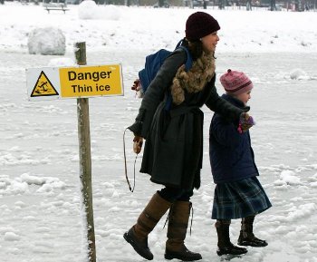 "We understand the great temptation to go on the ice but it is very dangerous. The ice varies in thickness, so though it may look thick on the edge there will be areas of thin ice which you won't be able to detect before it is too late. My advice is to admire the view and don't go on to the ice."