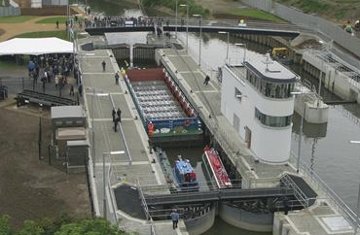 Questions have been raised about London's boast that the 2012 Olympics would be the 'greenest' ever, Roger Fox has discovered. The picture shows the 'White Elephant' of Prescott Lock, suitably with an empty barge, that cost a colossal £21 millions, backed by British Waterways, yet being virtually unused.