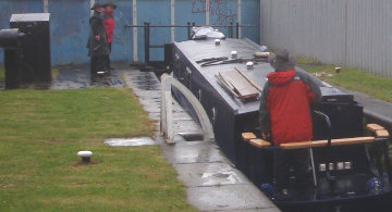 The bottom gates, being hydraulically operated, have no beams, making it easy for the bow of a boat to overhang the gates, Martin Clark writes (relating to the problem of a boat stuck on the gates and slowly being tipped up.)