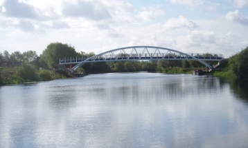 This of course replaces the dismantled former concrete bridge, but is further up the river where it narrows. In addition it is also classified as a bridleway, so is somewhat wider than the original.