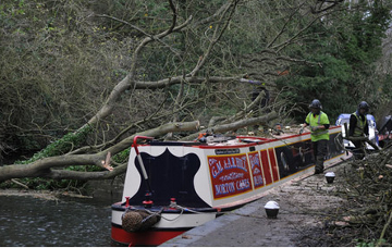 One boater found out to his distress when a tree came down on his boat as it was moored beneath it on the Market Harborough Arm of the Grand Union Canal, and it was only the efforts of British Waterways that eventually released his boat.