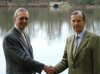 Today his descendant and great-great-great grandson is named as the first Patron of the Bedford & Milton Keynes Waterway Trust which is campaigning to create the same project. The photograph shows Graham Mabbutt (left) welcoming Sir Samuel Whitbread.