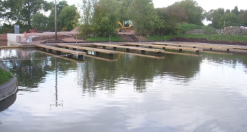 Kings Bromley Wharf is home to Ownashare as well as offering moorings, and has recently completed a dry dock. The photograph shows the berths at the moorings when they were being built.