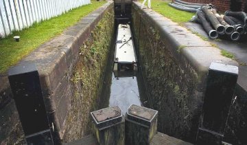 The front gates are particularly low on this lock, as can be seen from Mike Bolton's photograph, and when we cruised it last year there was a boat with its bow fast on the front gates, and it was only the quick intervention of Martin Clark, who was cruising with us at the time that prevented that boat from sinking.