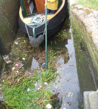 It was then Saturday, so the anglers of the Birmingham Angling Association were out on the Birmingham & Fazeley Canal on the pound below the first of Curdworth locks, and I could see the late arrivals busy ripping out the vegetation, letting it float down the waterway. And it was just our bad luck to come across that already removed, that had piled up inside the second lock. We ignored it at our peril, for it became wedged behind the bottom gate jamming the boat as we tried to move forward.