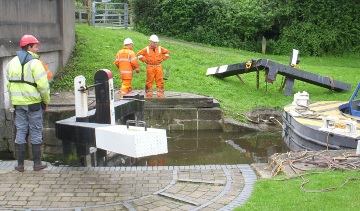 At least it gave the chance to repair the gates at Sawley Flood Lock whilst the lock was impassible, as the picture shows.