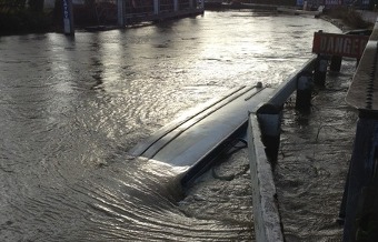 Many boats have broken free of their moorings in the recent floods, with one sunk in the flooded Thames at Oxford, breaking free of its moorings and rammed against the barriers at Osney Lock, Alan Tilbury reveals.