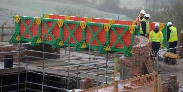 BRIDGES of waterways have been constructed in many ways over the years, but the one over a restored canal is most unusual as it is in giant size 'Meccano'.