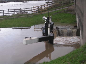 However, it had been raised, giving more protection, and does protect the marina to some degree, though this of course depends on the amount of flood water. The photograph shows the lock actually holding back the flood water—the lower level being the level of water in the marina.