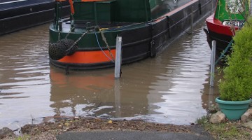 The photograph shows the spring (with yellow tape) that is secured to a jetty upright, that will hold our own boat from coming back on to the bank when the flood water that is over the jetty, recedes.  Yet there are many boats in the marina with no such simple safety device...