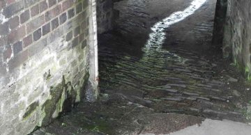 How long will it be before the whole wall and lock gate slides down through the pedestrian tunnel? Hope no one is passing through it at the time.