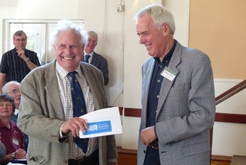 It was Robin Higgs who presented the £500 donation to Philip of the Wey & Arun Canal Trust at the Trust's recent AGM, with Philip stating the money will go towards funding work to reconnect the canal with the Wey at Gun's Mouth Island and reconstruction of the canal through Bramley, and added: