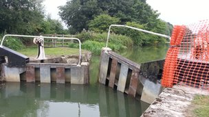 This happened on the Saturday morning, and the hirers obviously hadn't had the experience to realise to close the paddles and prevent more water coming into the lock to prevent the damage.