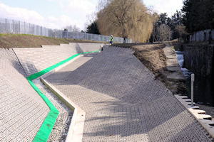 The Hydro scheme has been built in parallel with the main flood bypass system and, apart from the water being used by the fish and eel passes, can efficiently use the whole flow for 85% of the time in an average year. At very low flows, the turbine does not run and in very high flows, excess water flows over the large bypass weir which takes the water around the locks and the turbine.