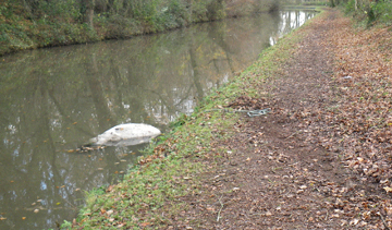 The RSPCA Inspector, Louise Labram, told that the ground was badly disturbed, as though it had been struggling, leading her to believe it was alive when it entered the water.