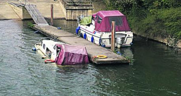 A CRUISER left at the lock landing at Osney Lock on the Thames has slowing been sinking, and is now virtually submerged.