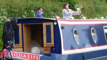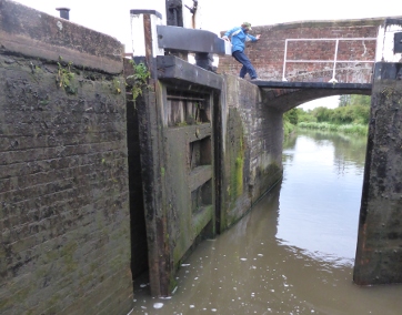 But then the very much dreaded Aston Lock, with both bottom gates wide open of course, as being on such an angle they neither stay open or shut. Jan (well known As She Who Must Be Obeyed) managed the left-hand one, then attempted to close the other, as seen, but as strong as she is just couldn't, so up the ladder scrambled our esteemed, and together they managed to close it, and she had had the sense to break the rules and had first opened a paddle beforehand or it wouldn't have stayed shut. Of course, though the top gates were firmly closed on leaving, before we had gone 20 yards they had both swung open.
