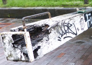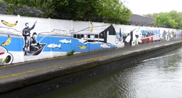 The graffiti really starts in earnest at Spaghetti Junction, is on the walls all the way down the Birmingham & Warwick Junction Canal, and is splattered all over the lock beams of Garrison Locks continuing all the way up the Digbeth Branch, as can be seen from the picture above; but there is an oasis of sanity with a new mural on the Branch that is a delight, but alas how long before those self same morons will ruin that too.