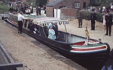 Queen Elizabeth the Queen Mother travelled by narrowboat to officially open the canal in 1964, and to celebrate the river relaunch in 1974.