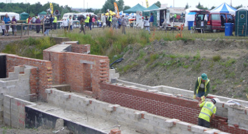 Despite dire forecasts earlier in the week, the rain held off and there was some sun on the Sunday. Thousands of people came to enjoy the fun, whilst the workers carried on bricklaying!