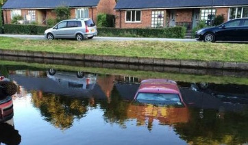 The second car in just a month has rolled into the waterway at the village just before the Pontcysyllte Aqueduct, with just its roof being seen above water, Alan Tilbury tells us.