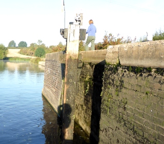 Then it was Zouch Cut Lock that gave trouble, as a bottom (leaking) gate would not go right back, to allow boat entry with just one gate, then would not stay closed, as too much slope. As pictured above. So it was here we go again, of the old, old method letting water in via a top gate paddle to keep it shut.