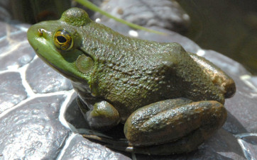 American Bullfrog. The bullfrog is one of the most harmful invasive non-native species. It both competes with and eats native amphibians, and carries a disease that has contributed to worldwide amphibian decline and to several global extinctions. It occupies any type of still or slowly moving water, especially where aquatic and bank vegetation are abundant. Now established in the UK.