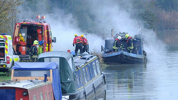 The narrowboat was moored at Hilperton Marsh near Trowbridge on the Kennet & Avon Canal with an early morning dog walker alerting the emergency services, but the boat was covered in flames when the fire fighters arrived on the scene, Alan Tilbury tells us.