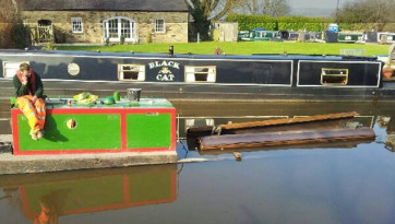 Linda Andrews tells that the stoppage notice advises that boaters should take care, as the canal will be affected by floating work boats—and provides a picture.