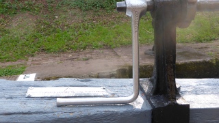 After the ease of the Staffs & Worcs paddle gear, I was finding the lower gearing of those of the Shroppie quite hard, with some gear installed so close to the beam that even the popular lightweight windlass had not enough space to operate as the picture shows.