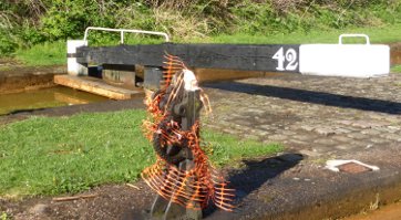 Though we always get back on board at the lock mouth, it was impossible here, as the wall had completely disappeared with struts across held by rope, that then left you at the mercies of the bywash until you could gain access.