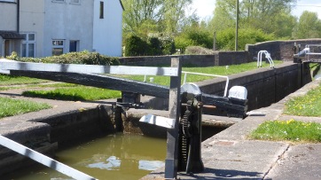 Going up through the lock last time was a pain, but this time it was worse coming down, and I rate it the worst lock of all to date. One of us just could not wind one of the bottom paddles at all it was so stiff, and the others were not much better, with the lock gates too needing some tender winter maintenance—in April!