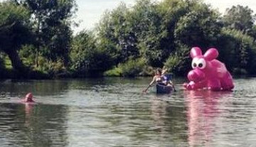 IF YOU are boating on the Thames at present, beware of a giant inflatable pink dog that is accompanying a team that are swimming the length of the Thames from Lechlade to Putney.