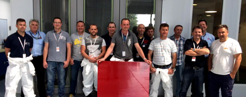 Stuart, who is from Lancaster, is a highly experienced boat painter and as part of the course, candidates were required to prime and spray paint a panel—with Stuart's work being judged the best. The picture shows Steve with 'his' panel together with the other painters.
