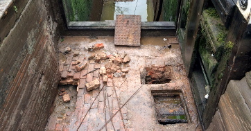 The crew were hoping to finish grouting today, but the weather is not in its favour, but when done the brickwork to the lock floor will need to be replaced before the lock is re-opened, Keith Gudgin tells us.