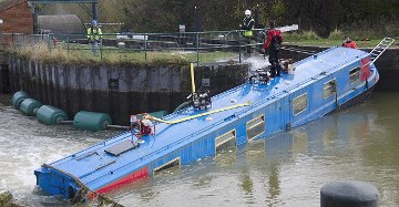 An example of the problem was at Wash House Lock on the Kennet & Avon Canal at Bath where the company the Trust employed to raise a sunken boat struggled for two weeks to raise a sunken Anglo Welsh hire boat, (pictured) but could not manage it, trying for nearly a week without success. The exasperated Trust finally brought in RCR that did the job in just two hours! (RCR raised lock-stricken boat.)