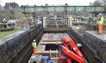 David Thorne, Project Manager with the Canal & River Trust, worked with contractors, Kier, to crane out the bridge onto a barge using a bespoke gantry, float it 100 metres down river and then crane it from the river on to a low loader by the Blue Bridge for the start of its road journey to a fabrication yard in Doncaster.