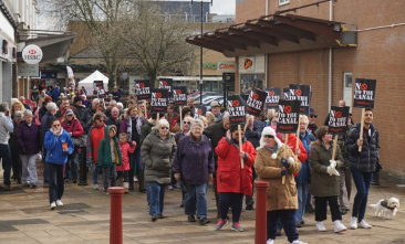 Protesters marched through the town centre to a rally chanting ‘Say no to the canal—it's a waste of money'.