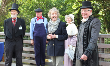 She cut a red ribbon across the roadway before posing for photographs with members in period dress and signing copies of the Trust's souvenir programme.