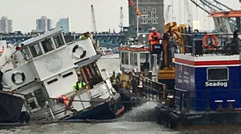 It was the London Fire Brigade that were called out to pump the vessel clear of water, as it would have caused an obstruction should it have sunk. There was no one on board at the time of the incident.