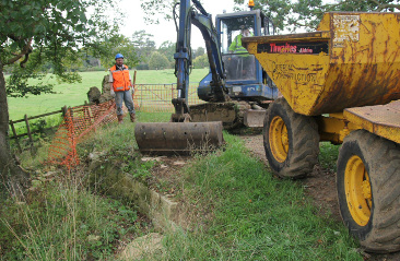 Over the past few months BCS volunteers have created a temporary farm crossing, adjacent to the bridge, allowing the formal closing of the bridge and the installation of necessary safety fencing. The volunteers have now started work on the excavation of the in-filled barrel and the abutments.