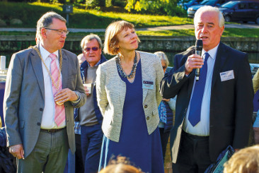 A cheque for that amount was given to Wey & Arun Canal Trust (WACT) during last month's commemoration of the waterway's 200th anniversary. In the photograph: Mike Lewis (right), treasurer of Guildford and Reading branch of the Inland Waterways Association, speaking during his cheque presentation, with WACT chairman Sally Schupke and Guildford Mayor Gordon Jackson.