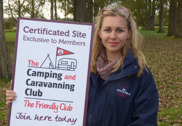 And here is a picture of the attractive Carrie, who runs the office on a Wednesday and Thursday proudly showing off its brand new camping sign.