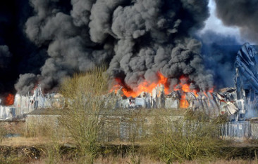 Fire fighters attempted to control the blaze after it broke out yesterday morning, but such was the heat generated that they were unable to get close as the many hundreds of tons of plastic burnt.