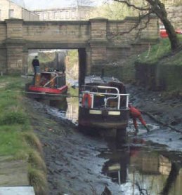 It is well recorded that there were instances of poor workmanship in the building of the waterway, with both reservoirs and the canal itself failing and locks not up to standard, causing problems throughout its working life. The picture shows moored boats left high and dry when a pound drains away overnight.