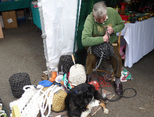 George Findley demonstrated the art of fender making. They have to be really tough and must keep their shape for many years. They are made by tightly weaving thick ropes into intricate patterns. George has been making fenders for over 40 years and is an acknowledged expert. It certainly seemed to be very hard work, but the finished articles on show were seen as works of art.