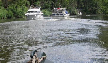 At weekends in the summer the river is very active with the 'gin palaces', especially around the marinas of Upton, most of which seem to care little for a narrowboat, creating a large wash, to which it is best to steer into. They seem to have little sense of the speed limit and care little which side they pass.